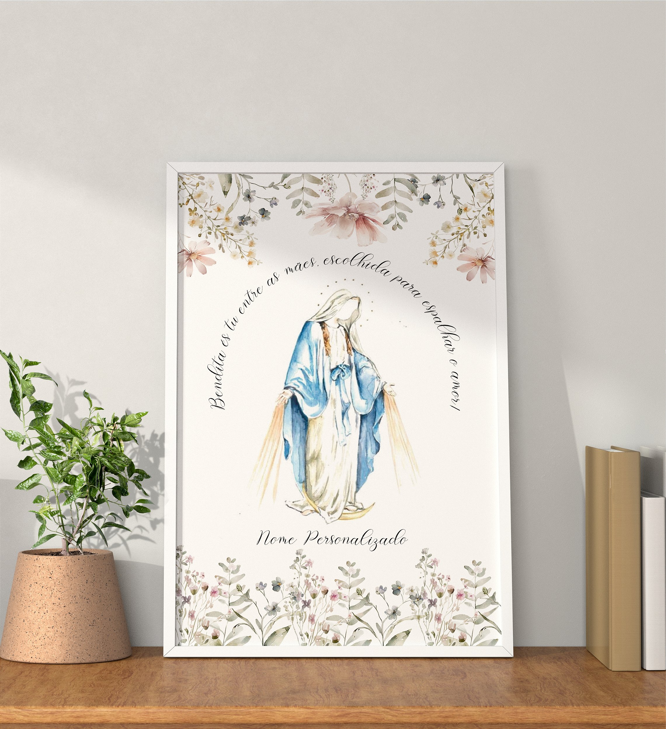Imagem de Nossa Senhora com a frase: Bendita és tu entre as mães, escolhida para espalhar amor!